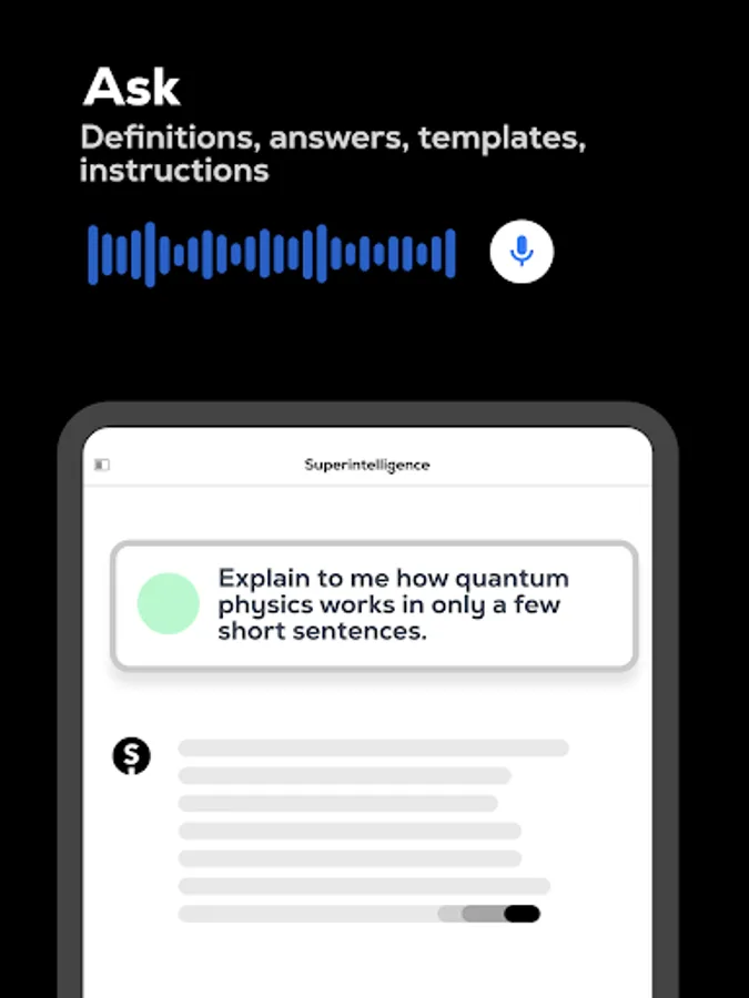 Simply ask for definitions, answers, and instructions or get templates for different types of documents such as resumes, presentations, business letters, or papers. Superintelligence can also help with research, outlining and editing.