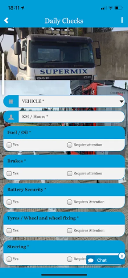 Application for Supermix drivers for use when making deliveries, vehicle maintenance checks.