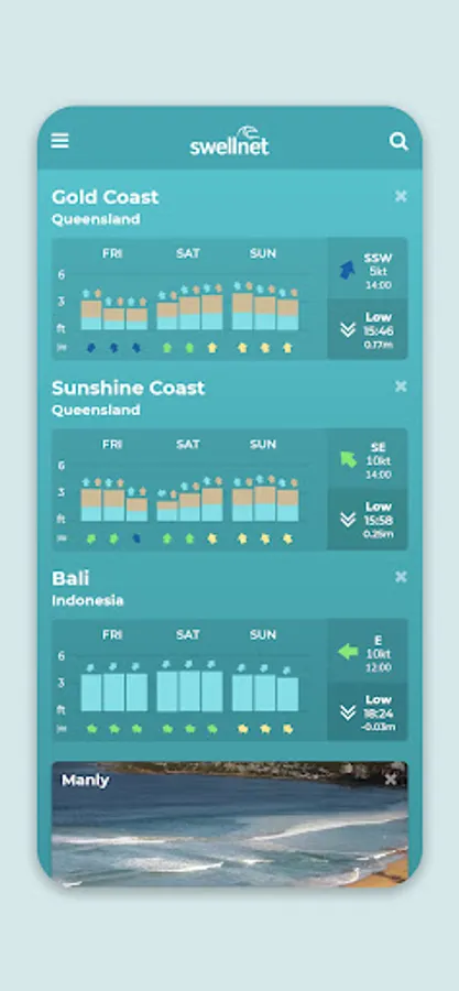 Featuring a great new user experience for viewing live surfcams, surfcam replays, surf reports, wind and tide data, and long range surf forecasts. Users can set up their favourites on the home screen with quick-view forecast graphs, live wind and tide data, and live streaming surfcams.