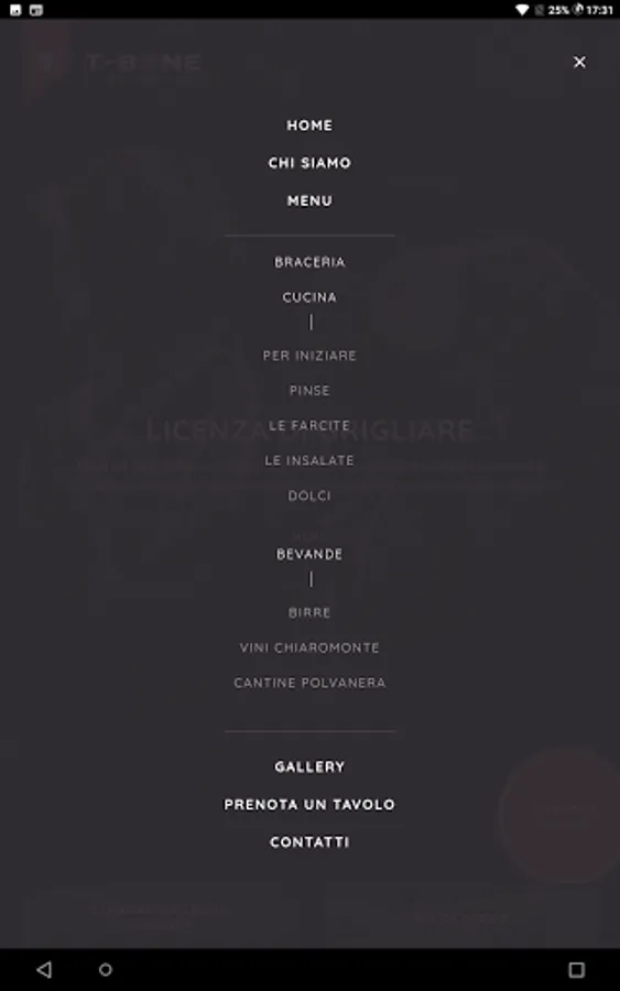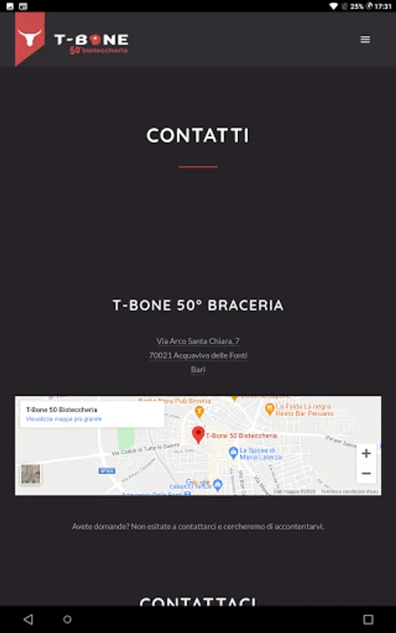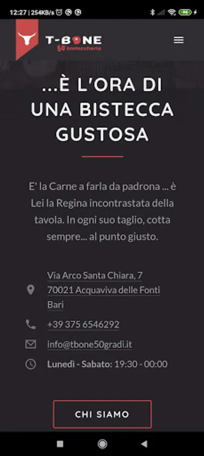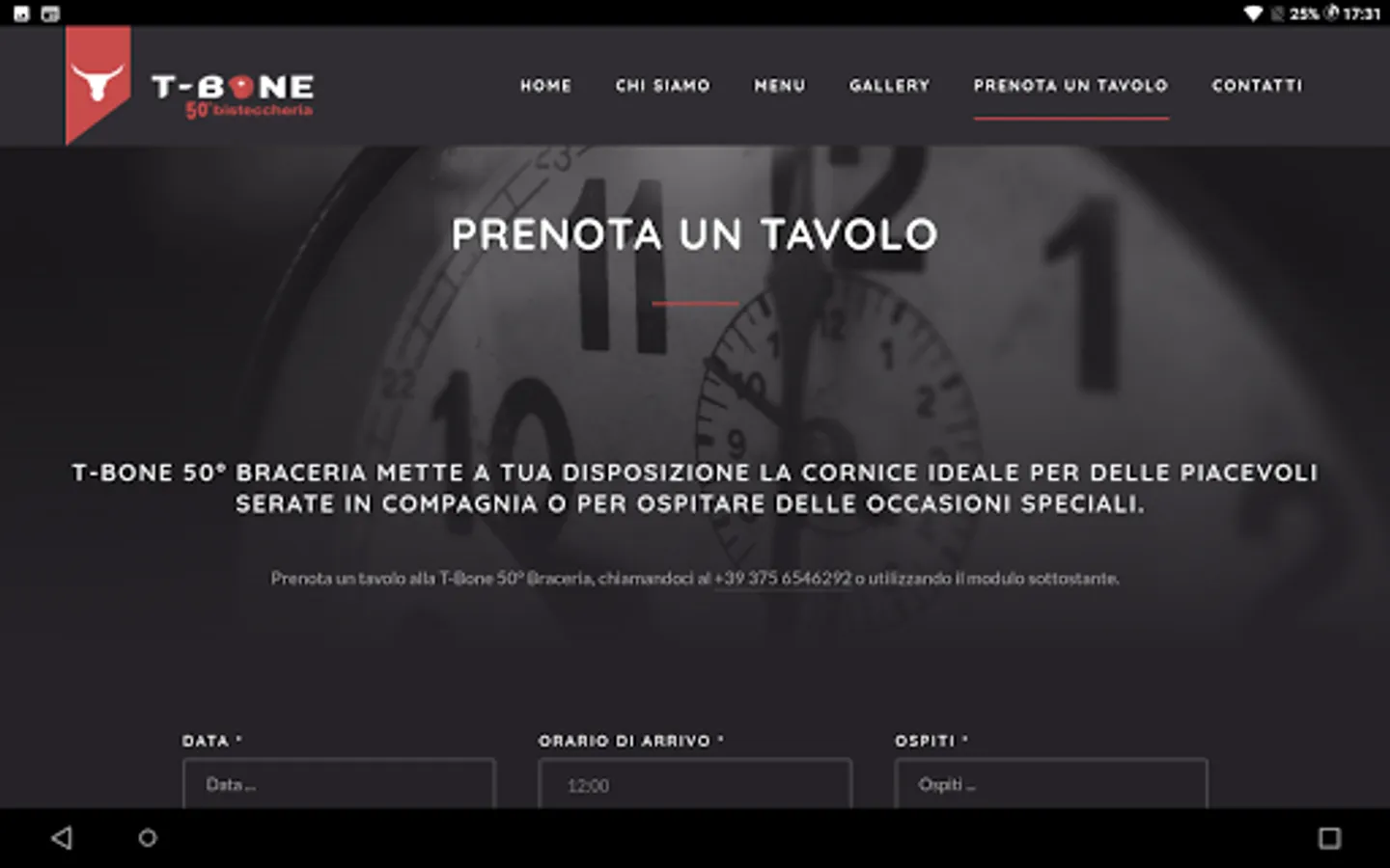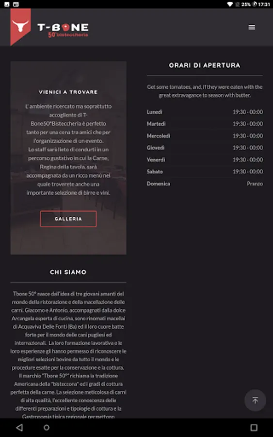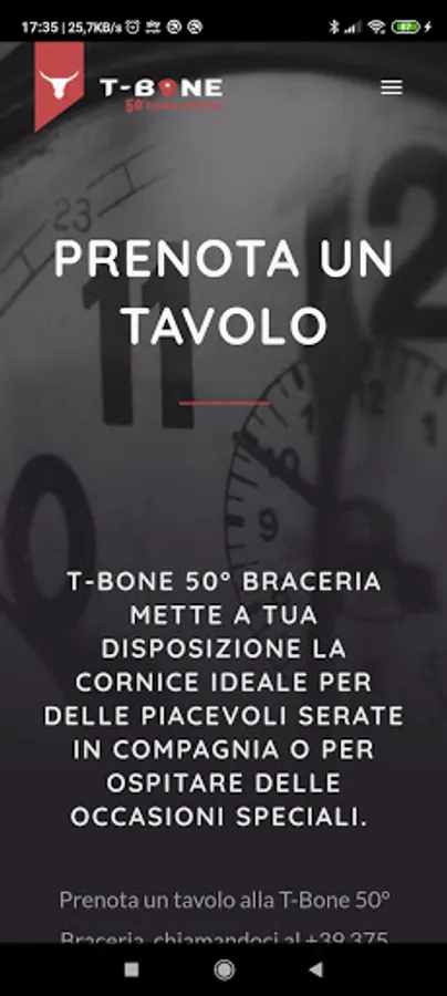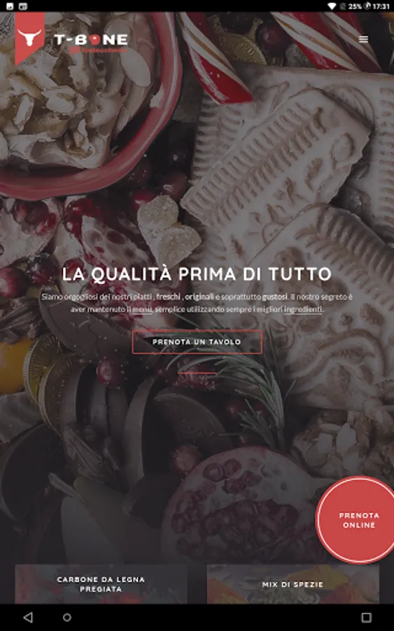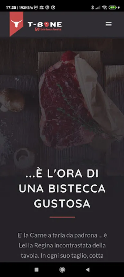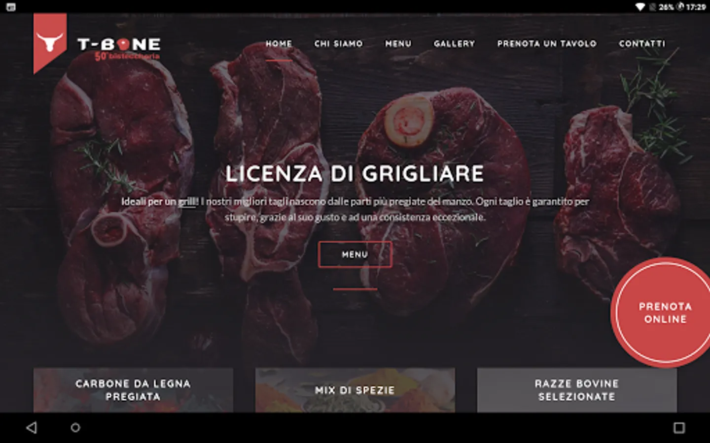 Discover with T-Bone 50 ° Bisteccheria, the welcoming environment and our culinary specialties in which the meat, queen of the table will be accompanied by a rich menu in which you will also find an important selection of beers and wines. The completely redesigned App is with an even simpler interface for quick and immediate navigation, allowing you to book your table or your special event.