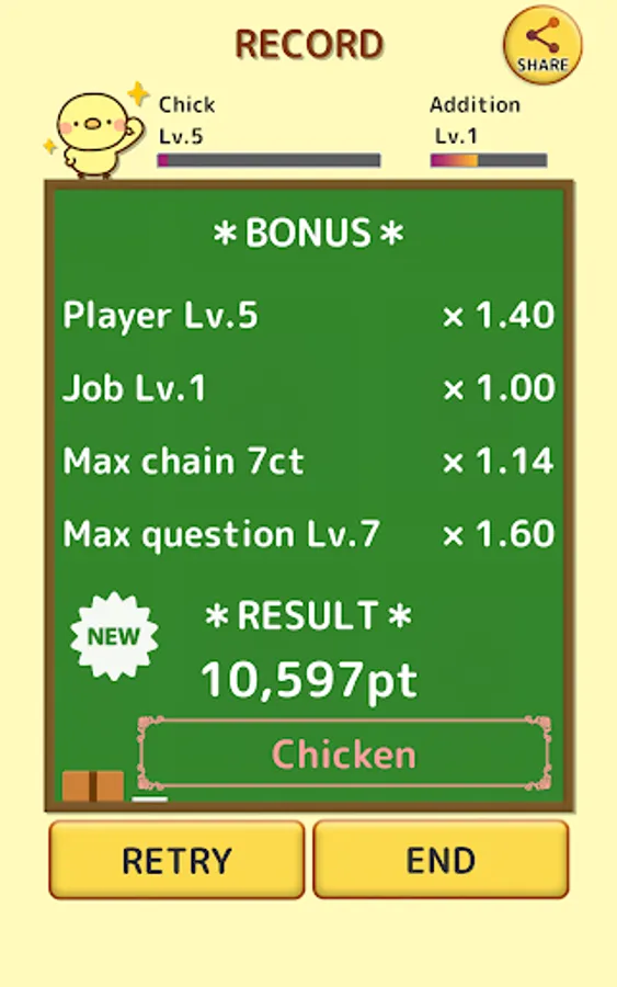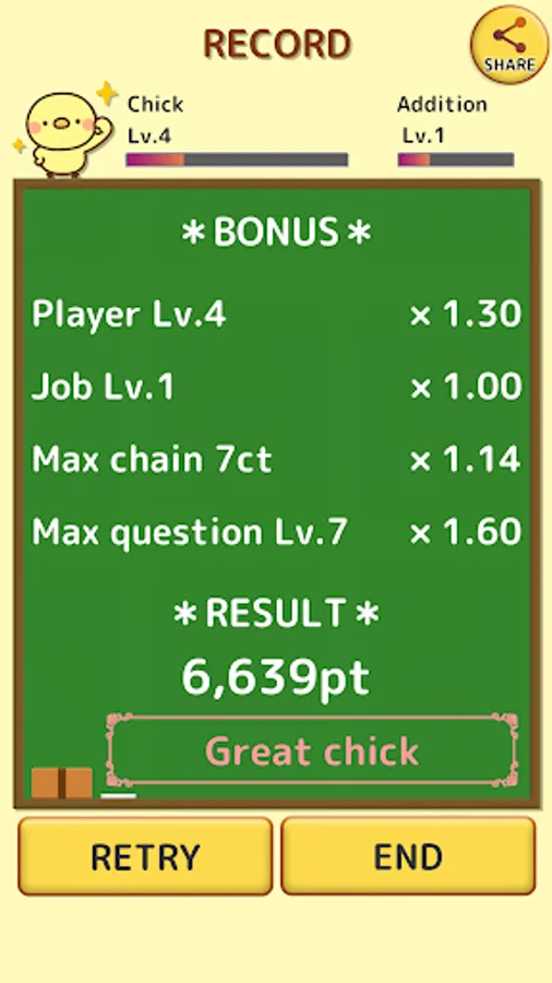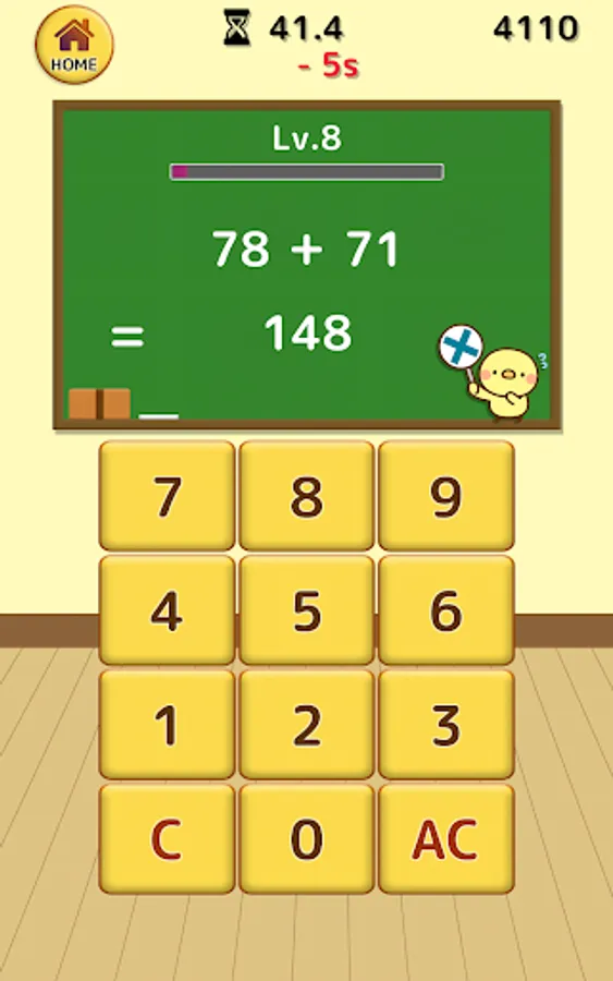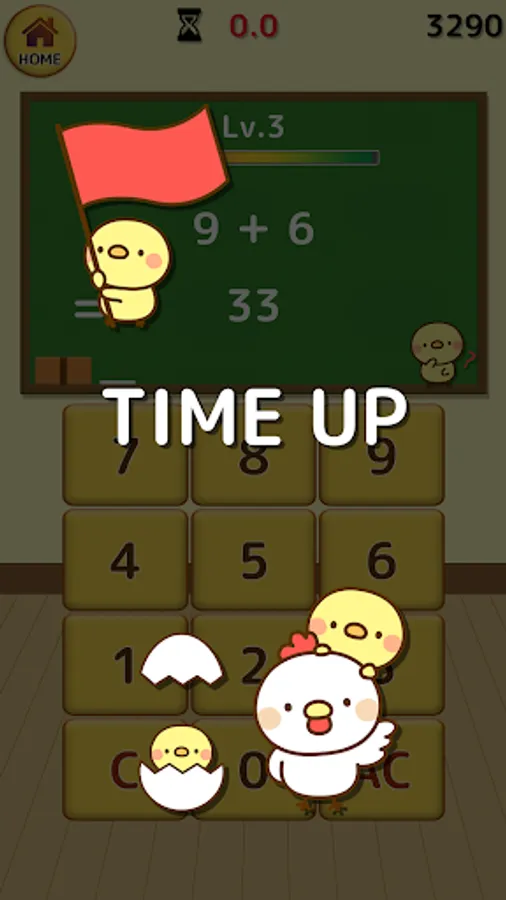 If you do a lot of mental arithmetic, the level of the chick will rise and after you finish the game a level bonus will be added so you can score high. Please aim for a high score and raise a lot of chicks.