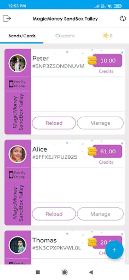 You can use the Talley Tickets Android Guest App to upload your family’s cards, wristbands, check balance and purchase more credits.