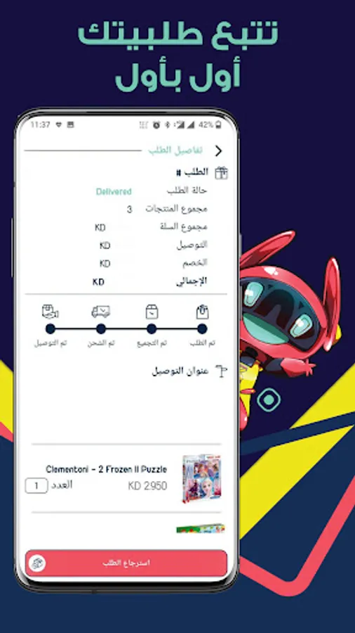 لا تكلف على نفسك الذهاب لمتاجر الألعاب لشراء لعبة لطفلك، حيث يمكنك مع تركيب اختيار ألعابك المفضلة من خلال تصفح مئات الألعاب المتميزة والمصنعة من قبل أشهر الماركات حول العالم بتطبيقنا المصمم خصيصاً لأجل سهولة استخدامك له. ولا تنسى اختيار تغليفنا المجاني والمميز قبل إتمام عملية شرائك ليتم توصيل وناستك عند باب بيتك بأسرع وقت ممكن.