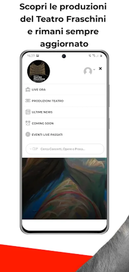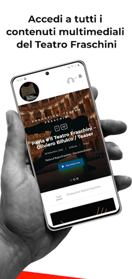 With this app you will have the possibility to access the contents in Live streaming that the Fraschini Theater has designed for its audience. With your account you can also create playlists and access a lot of multimedia content.