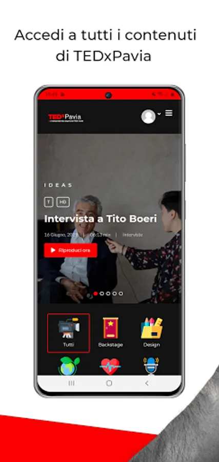 Discover TEDxPavia and access all its contents wherever and whenever you want. Be inspired by new ideas through the voices of the speakers. Access all categories, create your favorite video playlist, comment and interact with the rest of the community.