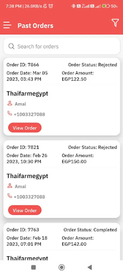 • When an order arrives, the branch owner/cashier can change the user status notification (Pending / Accepted / Delivered / Rejected,) while processing the order.