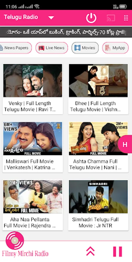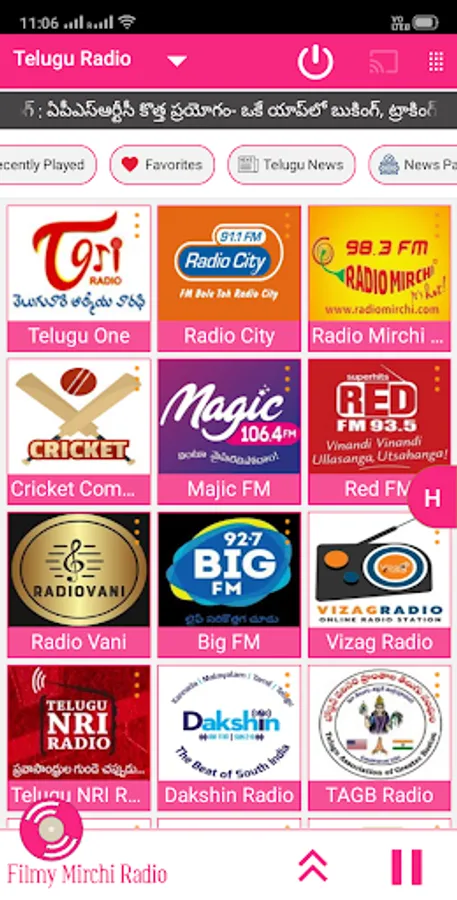 Telugu FM Radio HD Online app lets you listen to your favorite Telugu Radio FM Stations, Telugu Live News and Movies for free - anytime, anywhere.