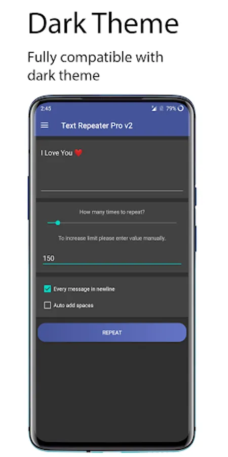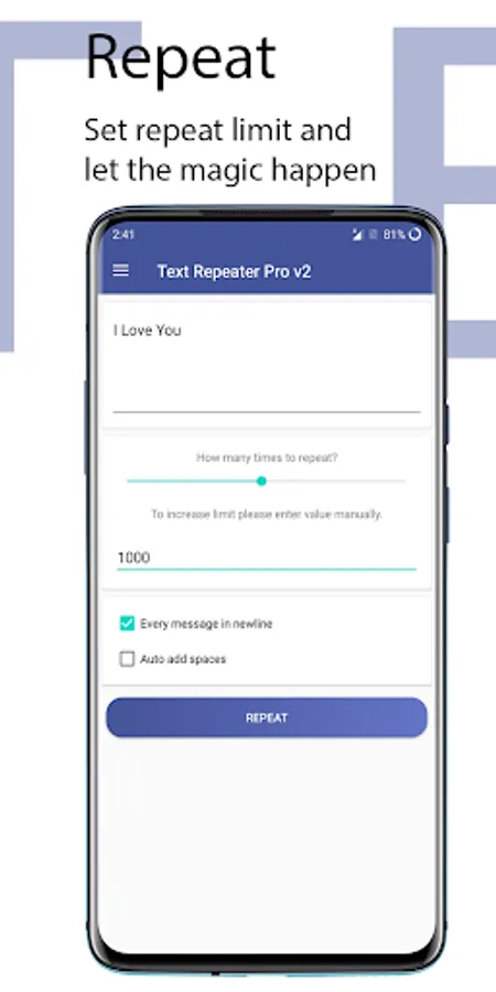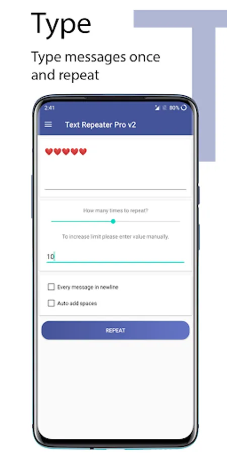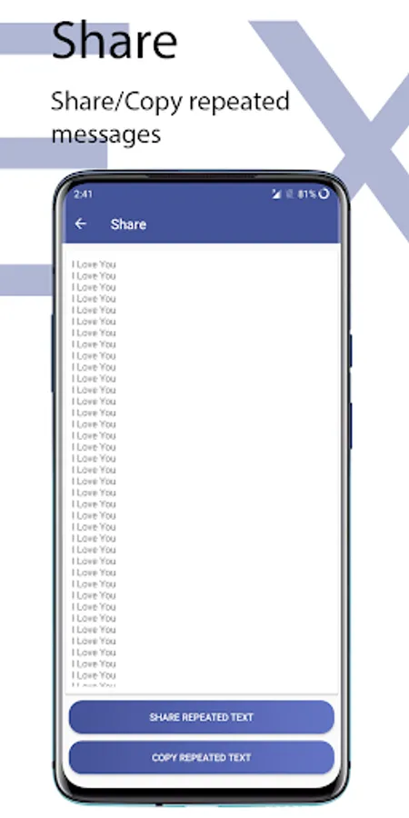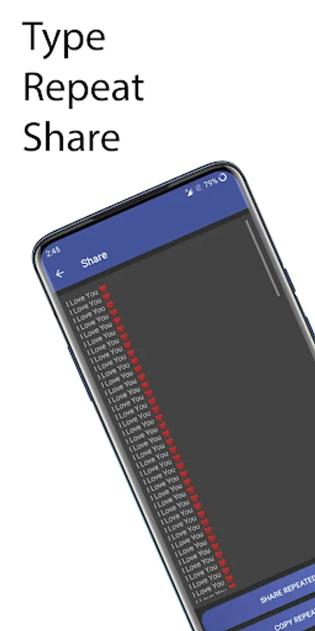 with Text Repeater one can type the desired message, simply repeat it & share it with anyone.