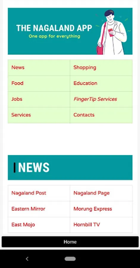 Using The Nagaland App, users can access all newspapers or media houses operating in Nagaland or focused on Nagaland (Nagaland Post, Nagaland Page, Morung Express, Eastern Mirror, Tiryimyim, East Mojo, HornbillTv, NLTV etc.) within the app without the need to visit each website individually.