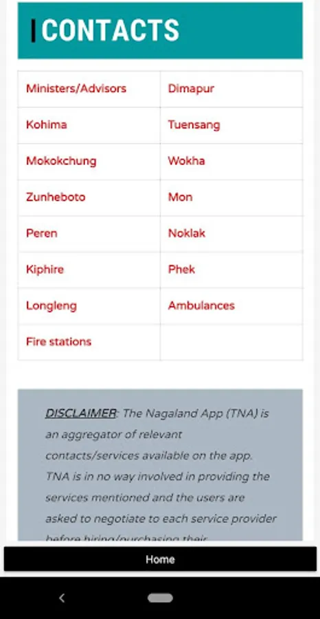 The Nagaland App also features all the emergency and important phone numbers (helplines) of all the districts within Nagaland like police, ambulance, fire service, hospitals etc. for quick and easy access of the users.