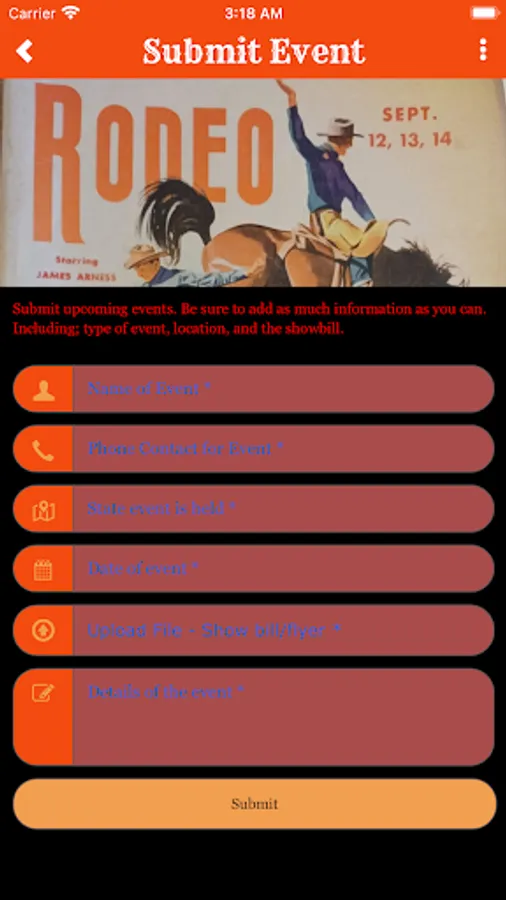Find all types of equine related events in one place through this simple app. You can find horse shows, rodeos, trail rides, clinics, auctions, and more here. You can even submit your events.
