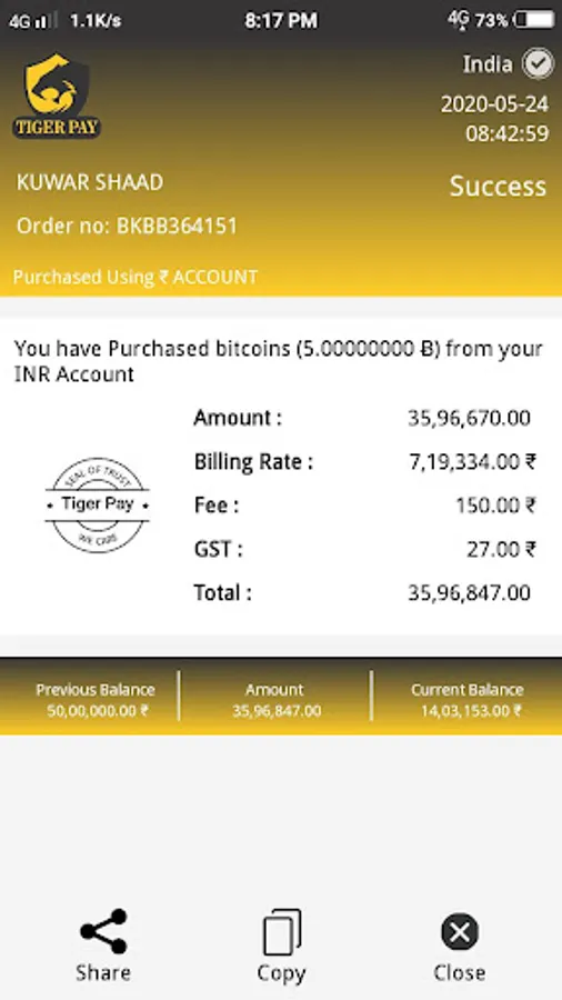 Tiger Pay wallet is easy to send receive bitcoin and use according to your need