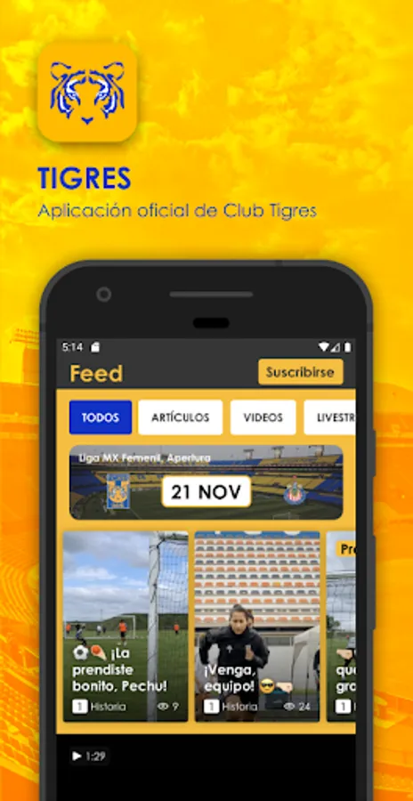 A new official Club Tigres app, with exclusive video content and match coverage, plus all the information about the matches and players you need to support the team you love.