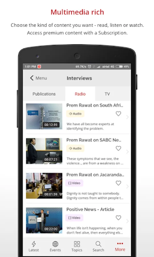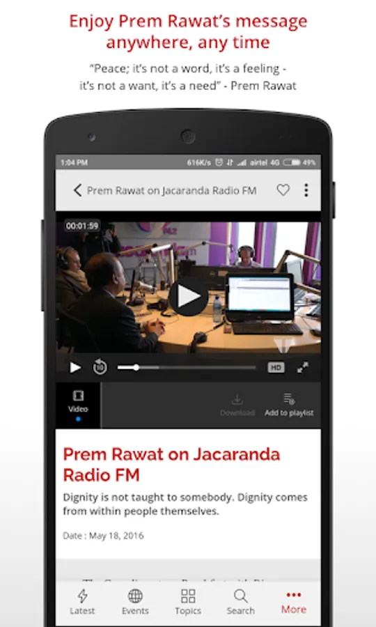 • The TimelessToday app puts Prem’s message of peace in your pocket.