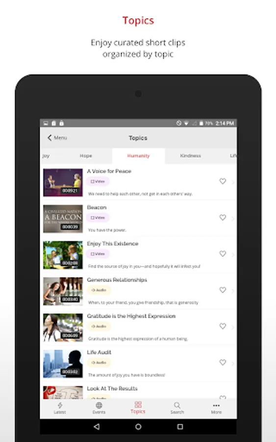 Available in the TimelessToday app is the Peace Education and Knowledge program – fondly referred to as PEAK – a heart-opening guide to discovering peace within. PEAK is free of charge and is perfect for all those who want practical tools for improving their lives.