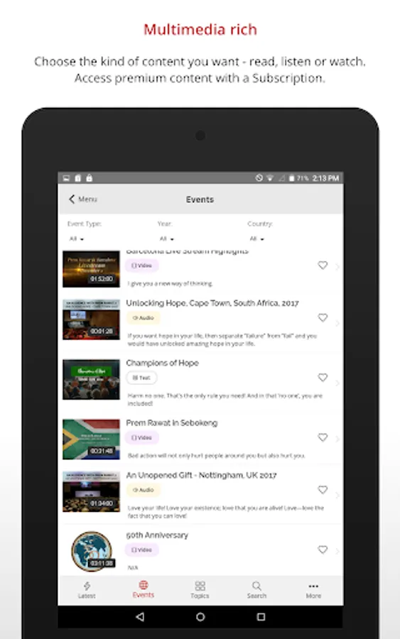 Our app is free to download and has a massive media archive for your perusal. Hundreds of free audios, videos and articles await you in this latest version.