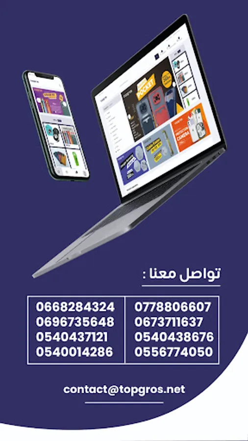 Topgros is the first company to adopt modern technologies for wholesale trade in Algeria. While by downloading the topgros app from Google Play, you can shop and purchase your goods through the app to receive them at the store.