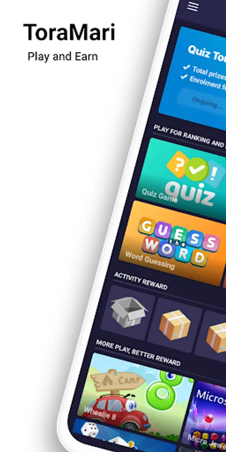Welcome to ToraMari, as our name describes "ToraMari" which is a Shona(Zimbabwean Language) phrase for Take Money, We are a multi-gaming platform, where you can play several different fun games, from 2D games to 3D games, including quizzes, puzzles, mental games, and high graphic games. What makes ToraMari from other gaming platforms you might know, we actually reward our users with real money by allowing them to redeem their points into real cash. How do we do this? We simply share our revenue with users by giving back 95% of our earnings to our users or they can choose to donate their earnings to charity. Download ToraMari and have fun plus earn. :)