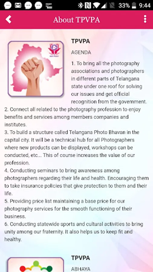 1. To bring all the photography associations and photographers in different parts of Telangana state under one roof for solving our issues and get official recognition from the government.