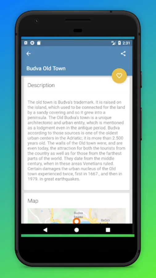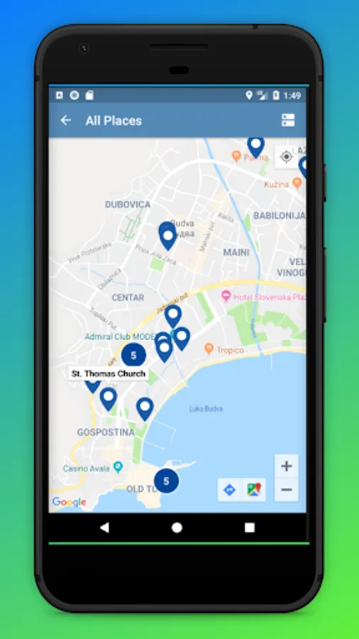 Map markers show you where the best places in Budva . Get detailed information about each place with a simple click. Zoom in and out for to understand. Find out where you are with GPS.
