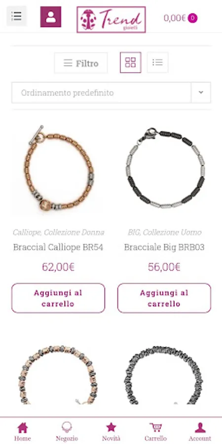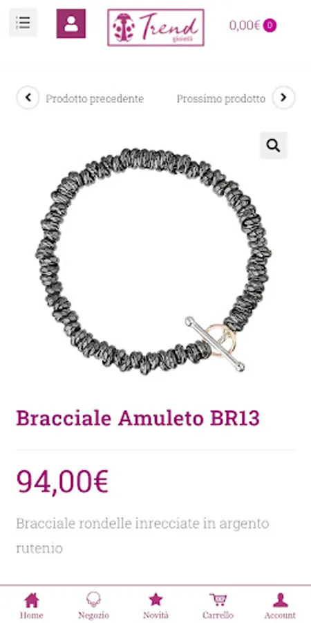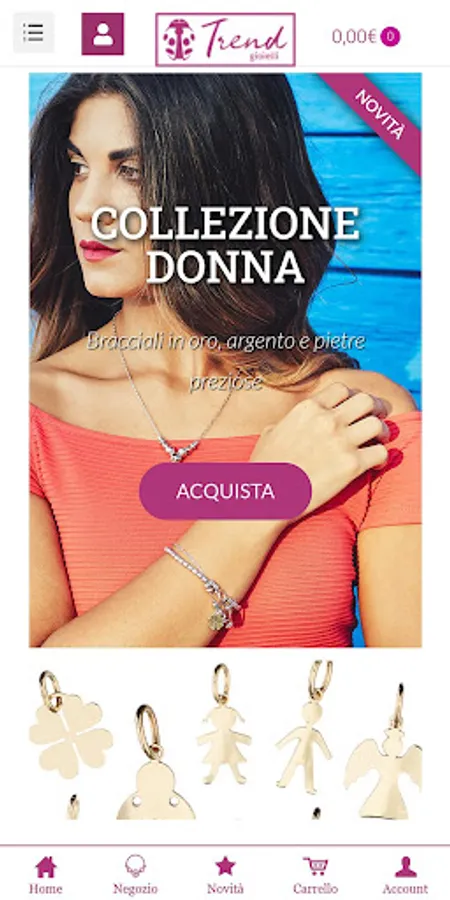 E-commerce website for jewelery, bracelets and charms in gold, silver and precious stones.