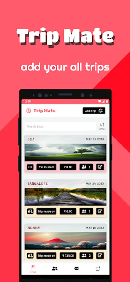 - Add new trips on the mytrip tab