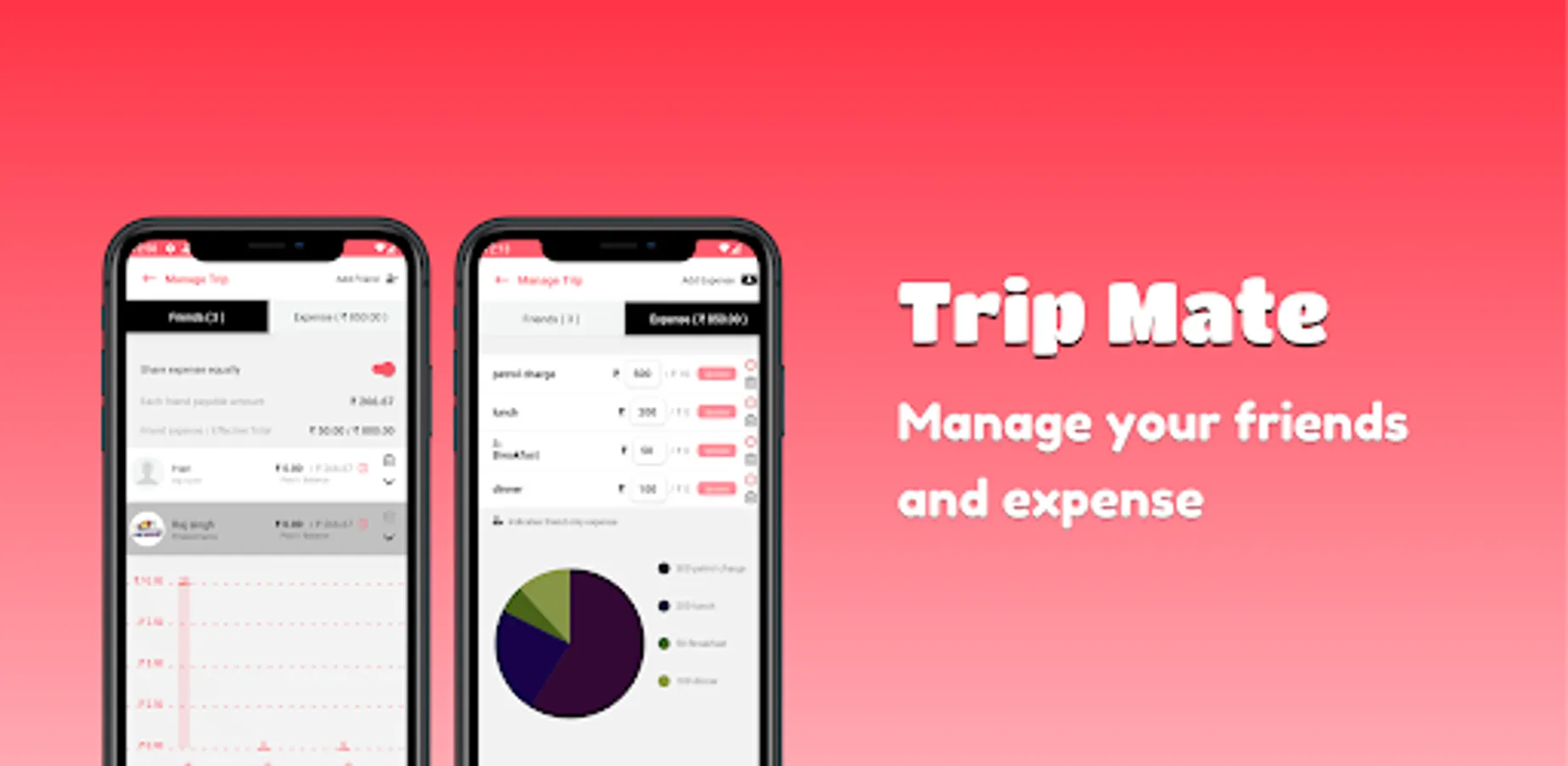 - Split expense equally or unequally among friends