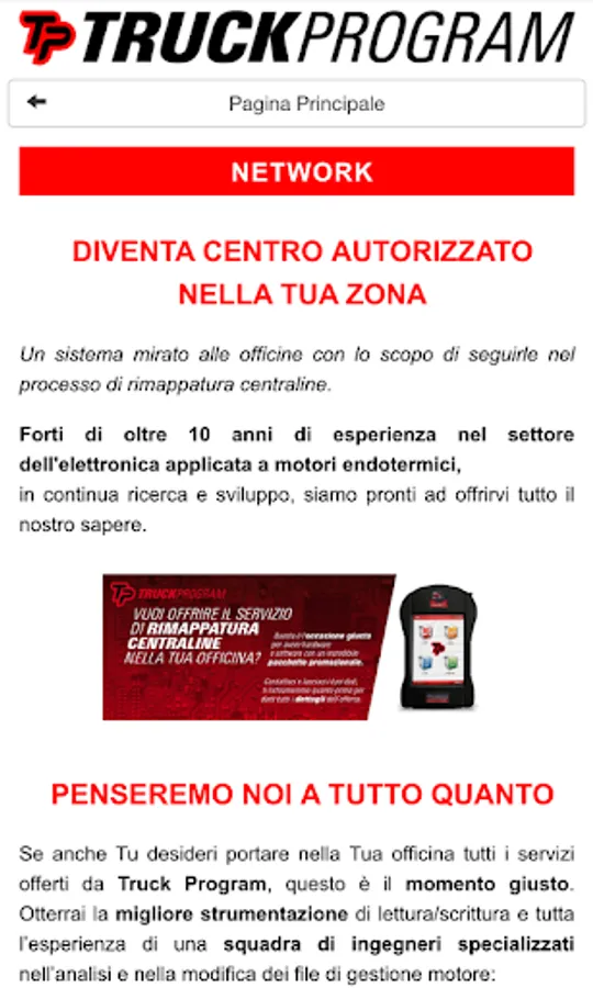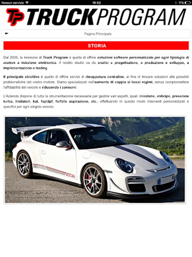 Truck Program performs activities ranging from analysis and design, to production and development, to implementation and testing, in the context of software systems applied to the control units for the control of internal combustion engines, with special attention paid to the preparation of programs aimed at optimizing the yields and the consequent reduction in consumption.