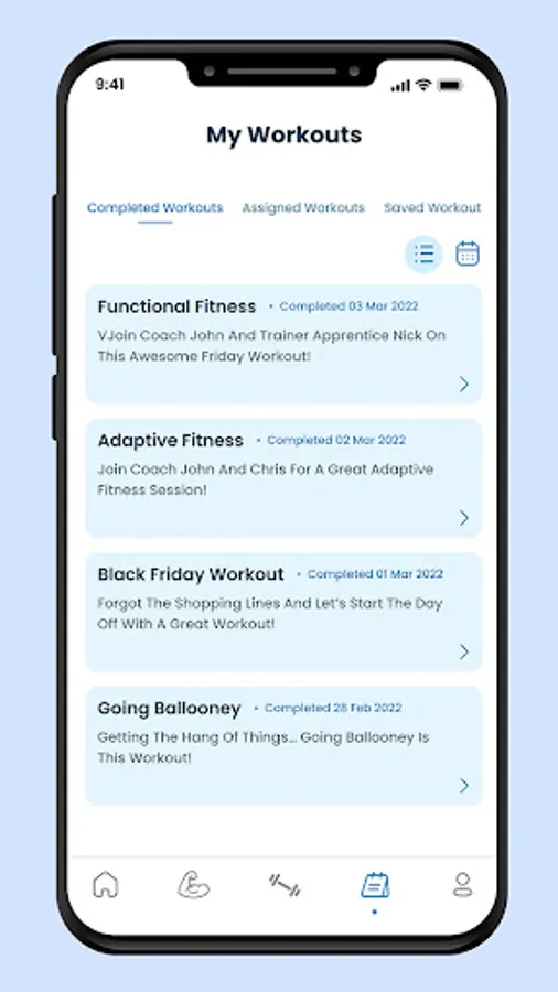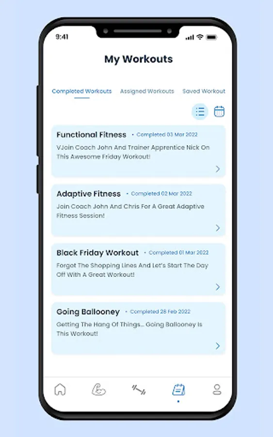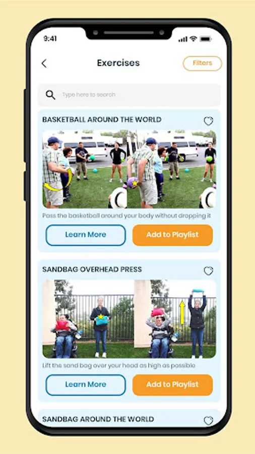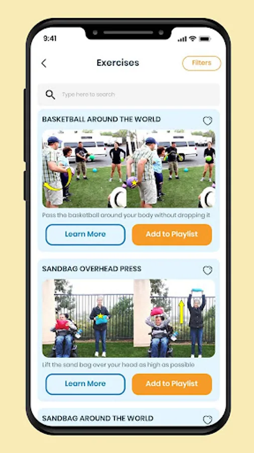 Filtering options allow you to select your ability, focus, equipment, or favorites so you can find the workout that is prefect for you.