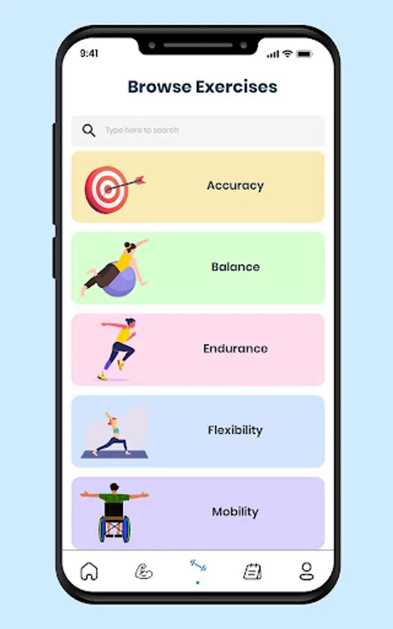 Explore workouts that focus on Accuracy, Strength, Balance, Stability, Coordination, Endurance, Flexibility, Mobility, Cardiovascular health, Pattern work and Teamwork.