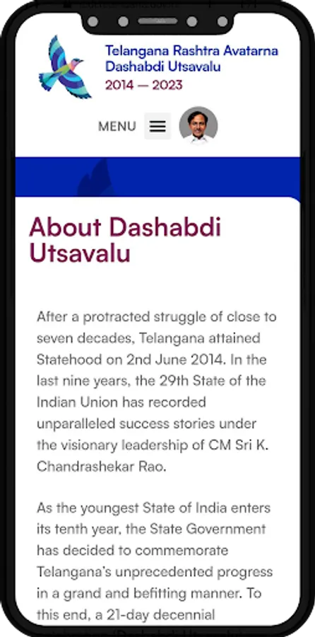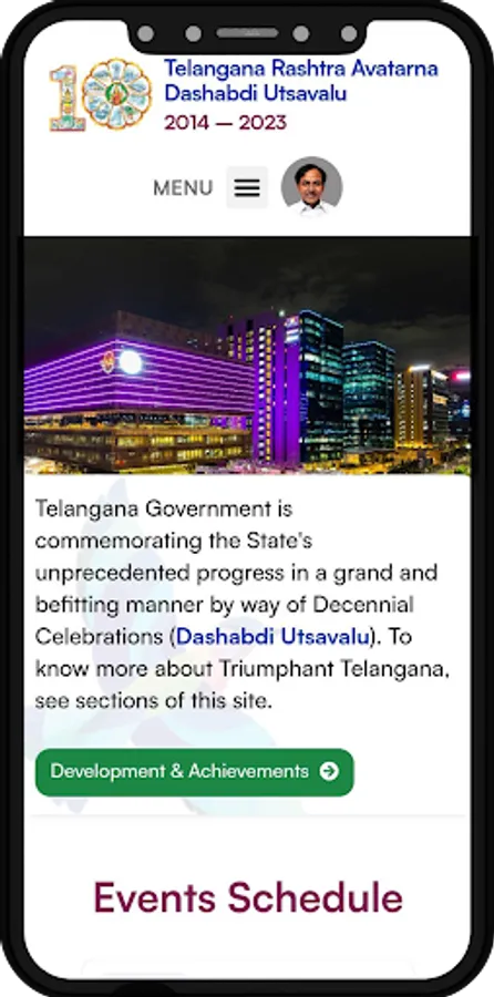 Telangana Government is commemorating the State's unprecedented progress in a grand and befitting manner by way of Decennial Celebrations (Dashabdi Utsavalu). To know more about Triumphant Telangana, see sections of this App.