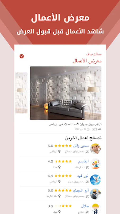 You can now, through the Toob application, display your services and list your projects so that you can get more customers through Toub. Also, when you work on more than one project through the Toob application, your account will be verified through the application so that you can attract more customers and obtain their trust and satisfaction.