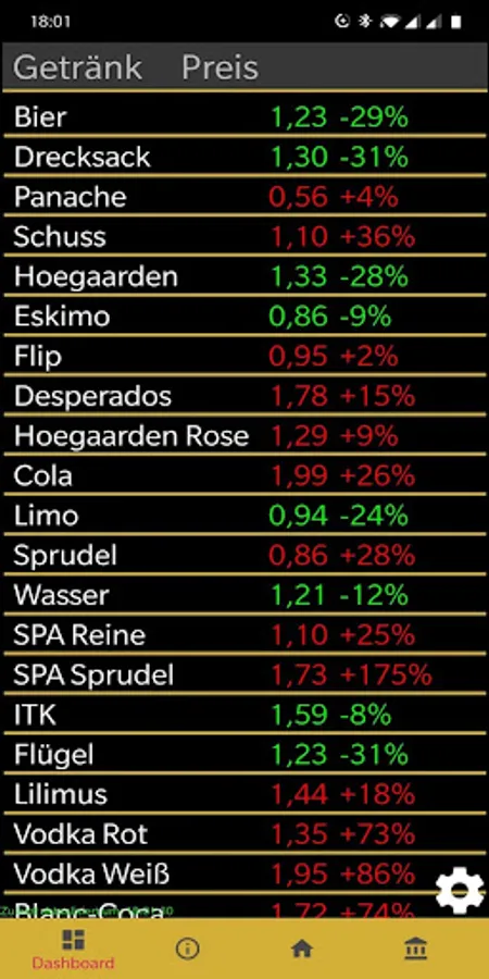 If, for example, the consumption of a beverage increases during the course of the event📈, its price📈 increases as well. If it falls (consumption) again📉, then the price of the beverage sinks as well.