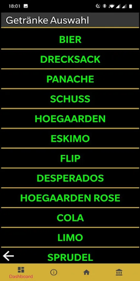 A constantly displayed price list shows you the current market price of all drinks traded on the stock exchange.