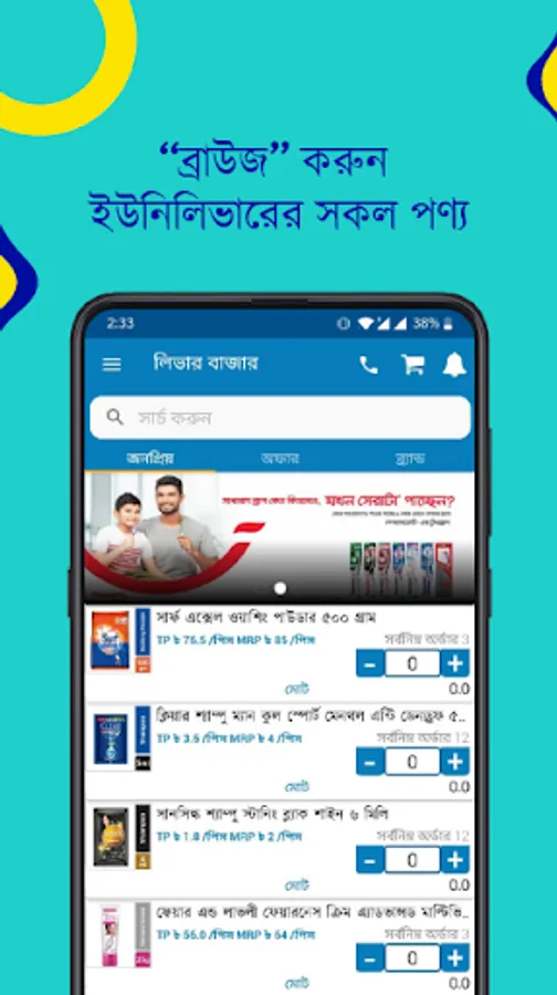 🔎 Browse & Save: You can browse and choose from the entire catalogue of Unilever Bangladesh Ltd. products through the Lever Bazar App. You will also enjoy exclusive discounts, while ordering products through the Lever Bazar App. Moreover, you will receive all the communication on your fingertips.