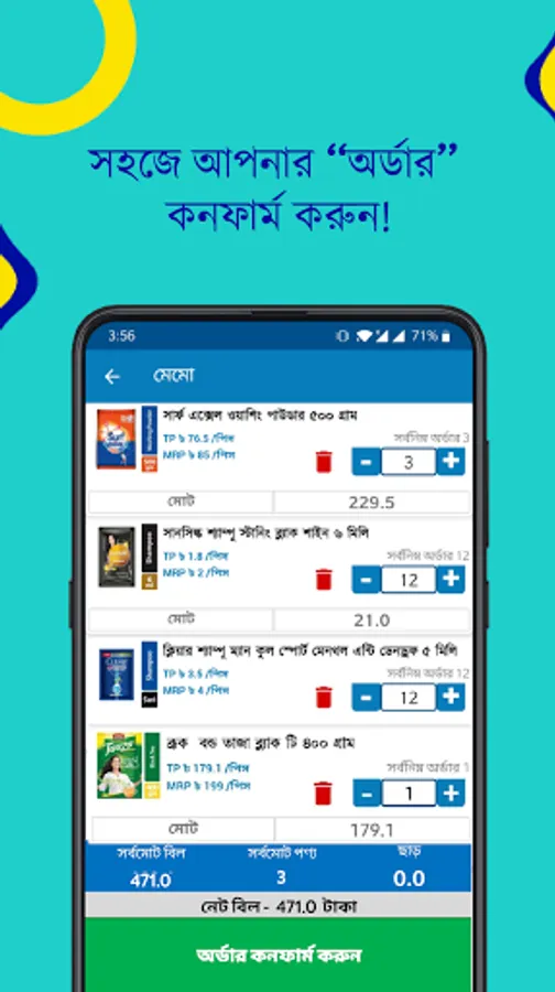 ☎️ যোগাযোগঃ অ্যাপ কিংবা আপনার অর্ডার সংক্রান্ত যেকোনো প্রয়োজনে অ্যাপ থেকে আপনার এলাকার ইউনিলিভার বাংলাদেশ লিমিটেড- এর অনুমোদিত সেলস অফিসার কিংবা ইউনিলিভার ট্রেড কেয়ার লাইন (০৯৬১৩০০০০০০) নম্বরে যোগাযোগ করুন।