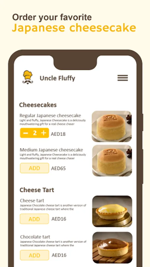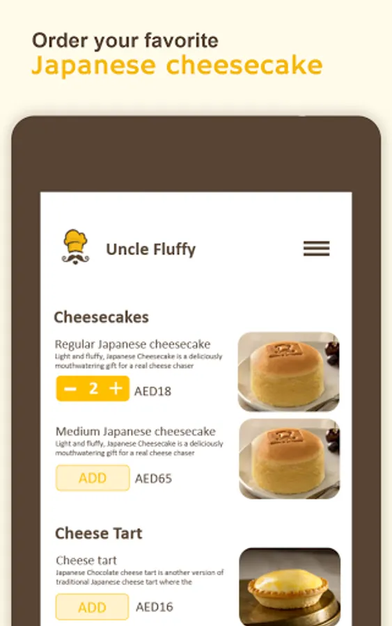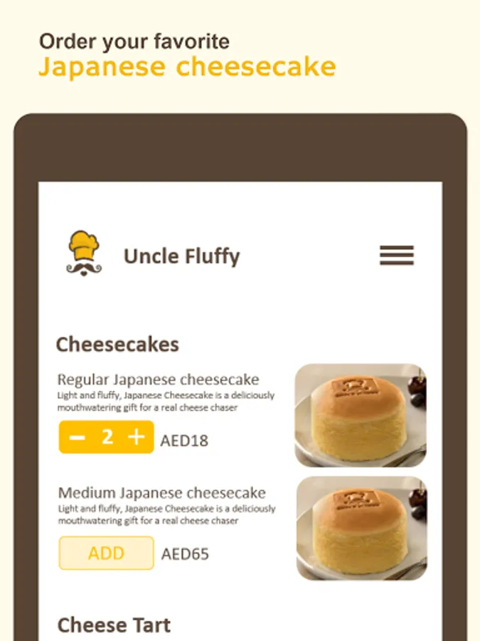 With Uncle Fluffy App, get your favorite Japanese cakes and tarts delivered to your home or office within the hour. Our famous cheesy Japanese cake is made of accurate and carefully measured ingredients to come up with the perfect shape and jiggle. In essence, Uncle Fluffy App is famous for delivering freshly baked, cheesecakes and other tasty products including cheese tarts, chocolate tart and cheesecake in cup. Download Now Uncle Fluffy App.