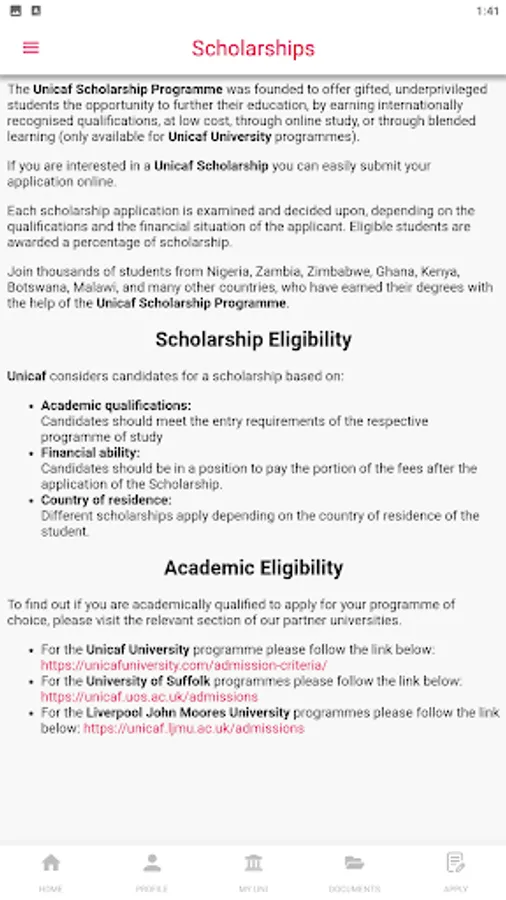 Unicaf is a global educational organisation based in Europe, offering scholarships to eligible candidates to pursue academic qualifications with its partner universities, currently the University of Suffolk in the UK, the Liverpool John Moores University also in the UK, California University, Riverside Extension in the USA and multi-campus Unicaf University in Africa.