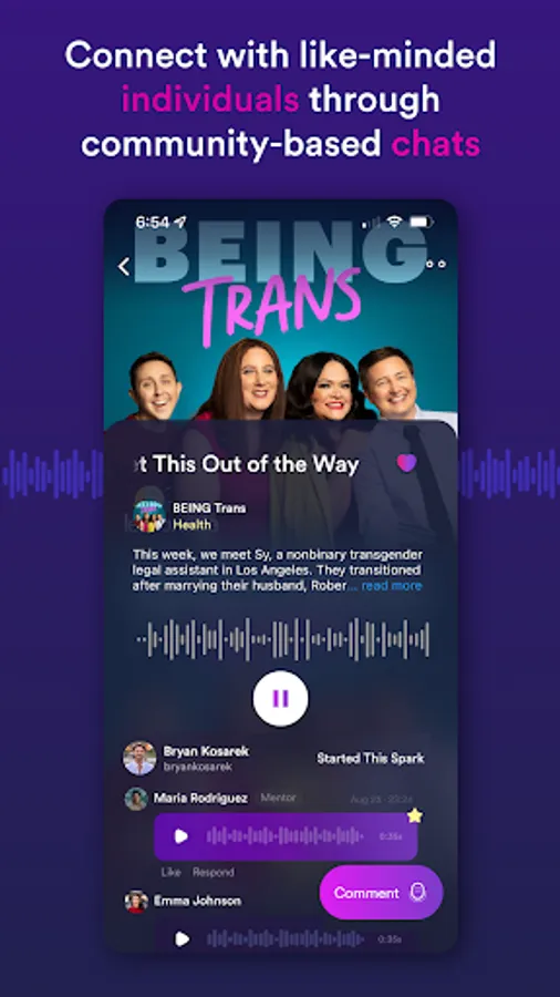 Using personal connections and community, two minute podcast clips, and through the discovery of full episodes and creators, Unitē is “Sparking” A-hah moments by bringing people together and bridging the gap between self-help and therapy through relevant content - we’re turning community into a form of self-care.