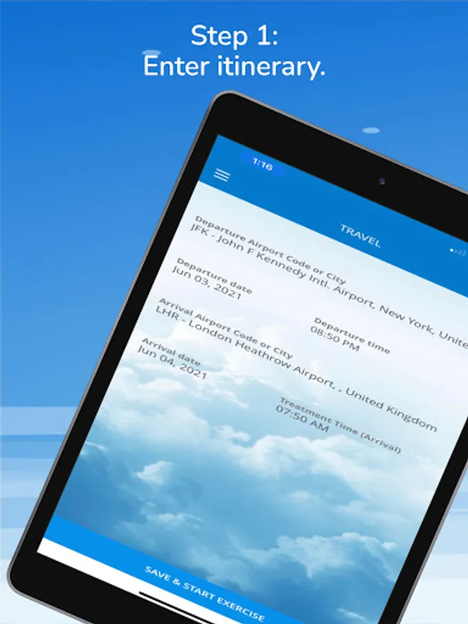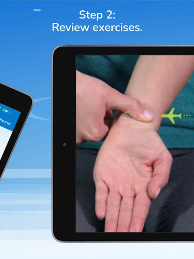 The Uplift app uses videos to guide you through the process of Precision Nerve Stimulation to reset your body clock to your new time zone in 4 easy steps that take about 5-7 minutes.