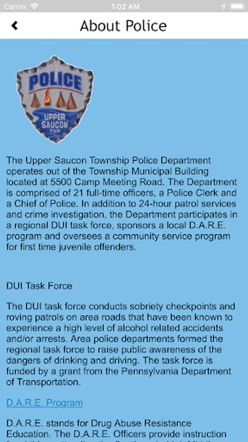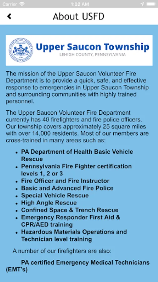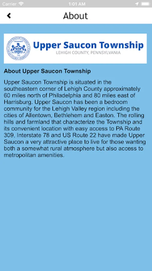 Upper Saucon Townships Community App. This app will provide information, alerts, updates, forms, and maps of the community. The app will be used by residents and employees of the township to stay informed of events and activity in the township.