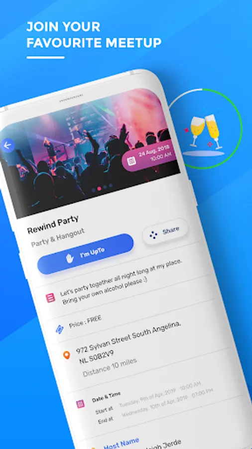 Also, you can choose to use UpTo as a host by creating your own meetups.