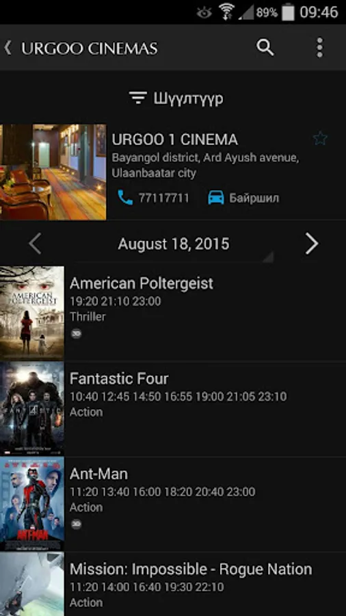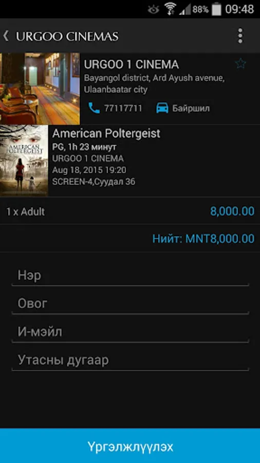 Өргөө кинотеатрын үнэгүй аппликейшныг та өөрийн гар утас болон мобайл төхөөрөмжиндөө татан суулгасанаар Өргөө кино театрын билет захиалгын системд холбогдож үзвэрийн тасалбар захиалан авах үзвэрийн мэдээллийг хурдан шуурхай авах боломтой болох юм. Мөн та манай театрын бонус картын хэрэглэгч бол энэхүү апликейшнээр дамжуулан өөрийн бонус дансны үлдэгдэл, гүйлгээний түүхийг харах, билет захиалах зэрэг үйлдлүүдийг хийх боломжтойгоороо давуу талтай юм.