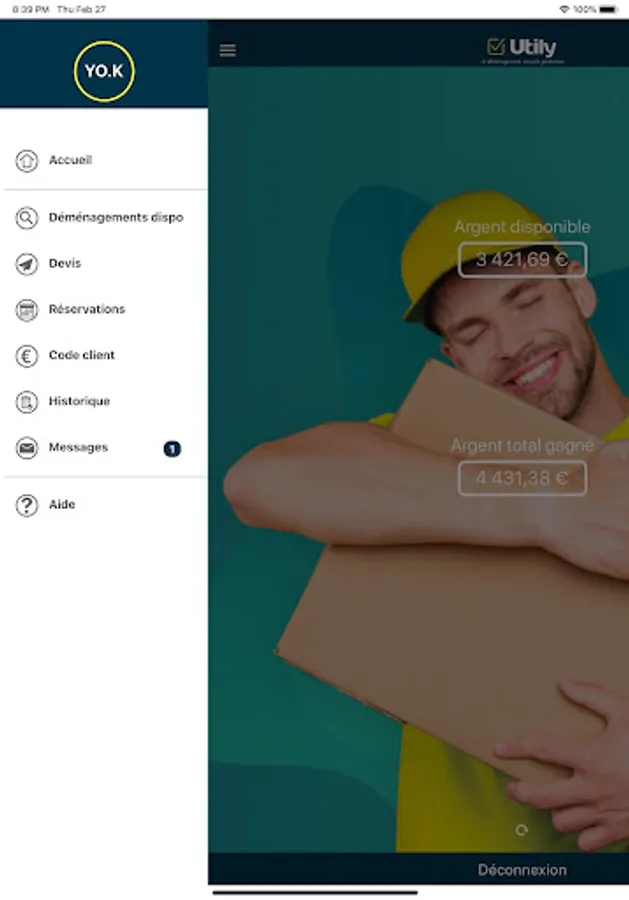 The mobile application allows you to follow the progress of the move in real time but also allows you to receive your payment.