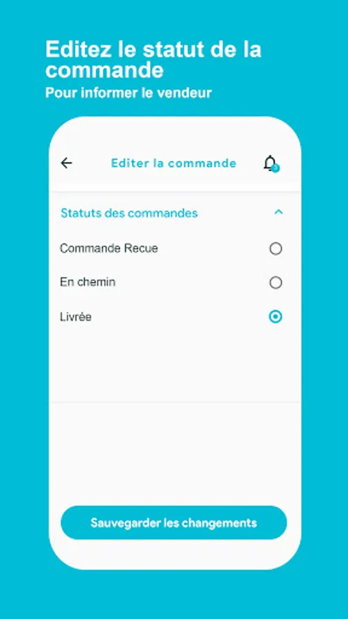 ⁃ Modifier le statut de la commande ( Recue , En chemin , Livrée ...)