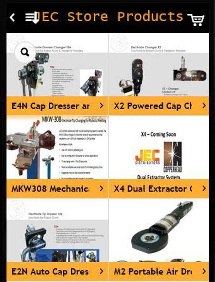 JEC Distributors offers its own line of products under the COPPERHEAD and ETS brands which includes electrode management systems such as auto cap changers, tip dressers, combination tip dresser/changer unit, and cutters/holders.