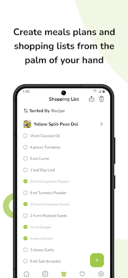 • Shopping list feature that allows you to directly add ingredients from any recipe and customize your shopping list to include additional items
