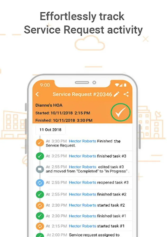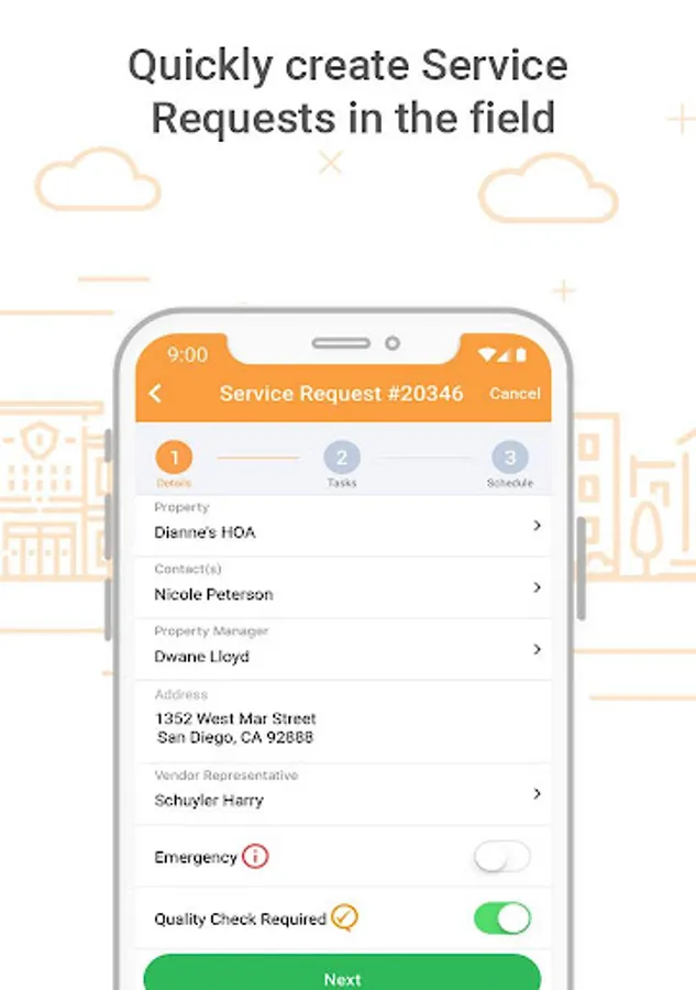 - The Service Request process is simple. Create a Service Request by entering and assigning tasks to employees in the field and scheduling a start and finish time. The employees complete the tasks and visually document their work with photos. The Vendors and Property Representatives act as a team through the Client Share Portal and Guest Accounts to ensure the Service Request is completed on time, within scope and cost, and with high quality.