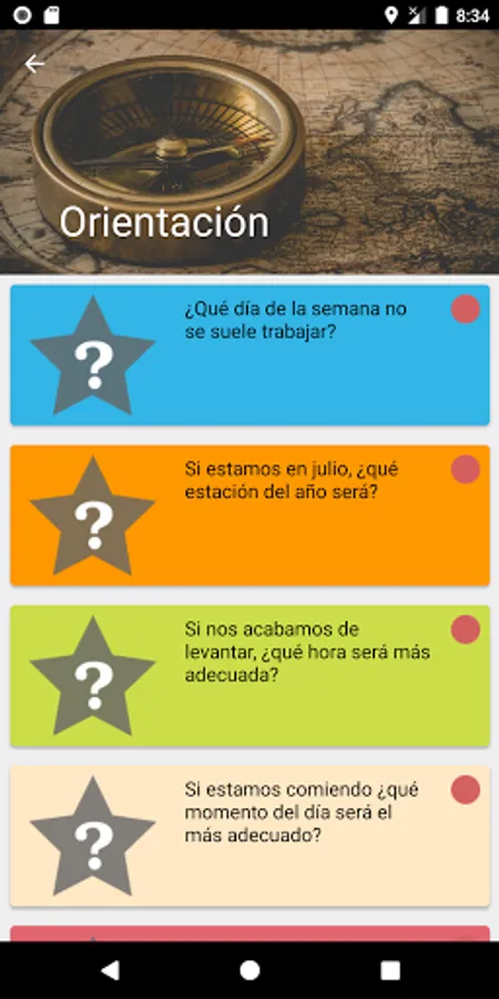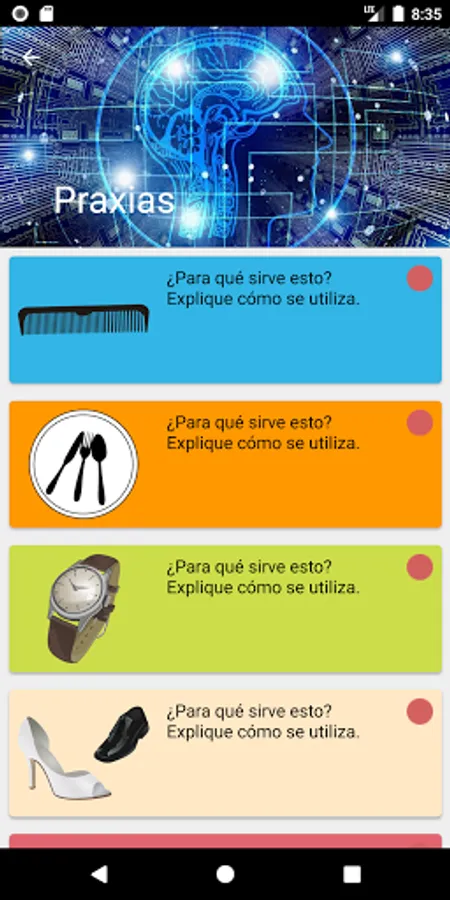 Complete application with cognitive stimulation questions to activate the brain. Especially recommended for the elderly to prevent problems related to dementia, such as memory problems, aphasia or agnosia. Also recommended for people who have suffered stroke, early Alzheimer's, etc. Simple and easy handling.