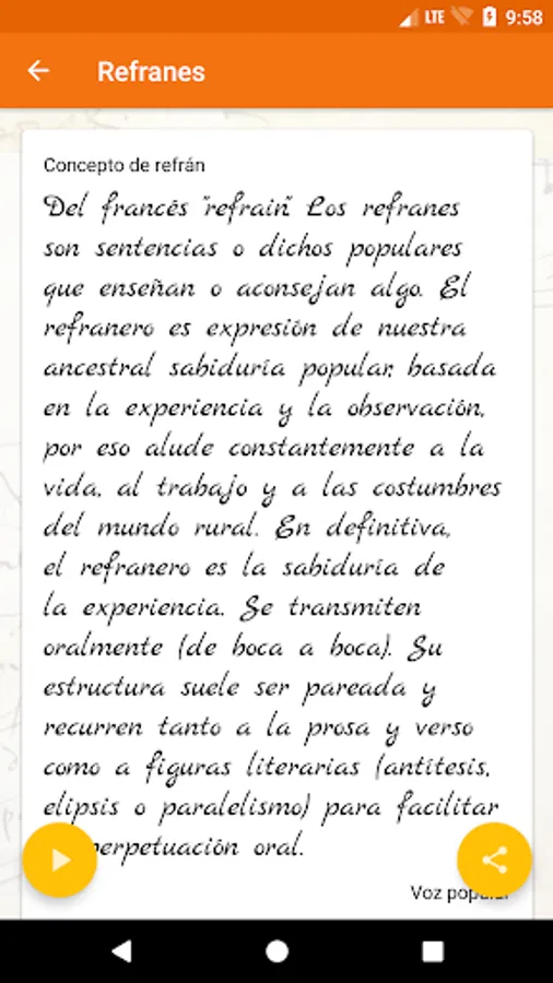 Because sayings are part of our popular culture, download our application and get to know the Spanish saying. You will also be able to know the curious meaning and origin of our sayings.